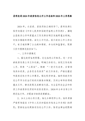 县科技局2024年政府信息公开工作总结和2025年工作思路.docx