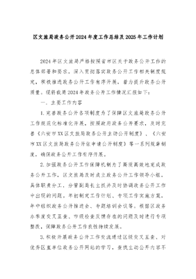 区文旅局政务公开2024年度工作总结及2025年工作计划.docx