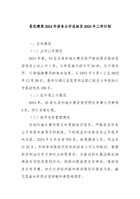 县住建局2024年政务公开总结及2025年工作计划.docx