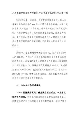 人力资源和社会保障局2024年工作总结及2025年工作计划.docx