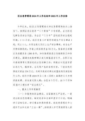 区应急管理局2024年工作总结和2025年工作安排.docx