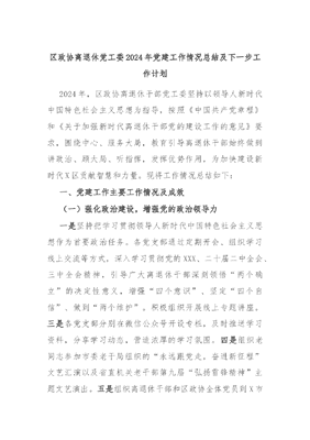 区政协离退休党工委2024年党建工作情况总结及下一步工作计划.docx
