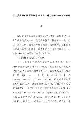 区人力资源和社会保障局2024年工作总结和2025年工作计划.docx