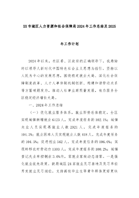 XX市城区人力资源和社会保障局2024年工作总结及2025年工作计划.docx