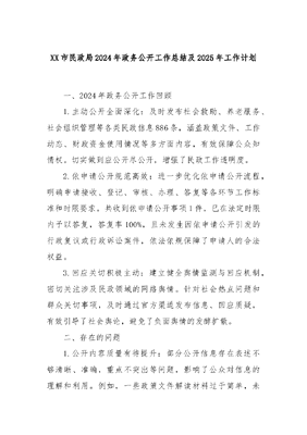 XX市民政局2024年政务公开工作总结及2025年工作计划.docx