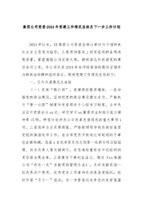 集团公司党委2024年党建工作情况总结及下一步工作计划.docx