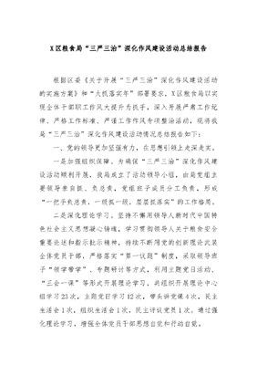 X区粮食局“三严三治”深化作风建设活动总结报告.docx