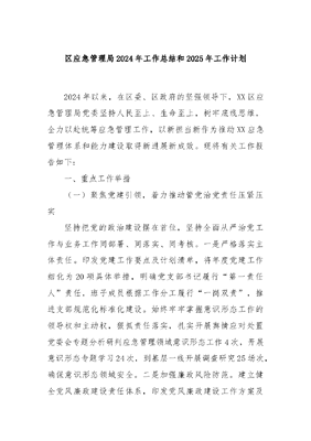 区应急管理局2024年工作总结和2025年工作计划.docx