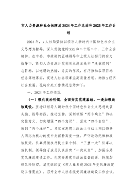 市人力资源和社会保障局2024年工作总结和2025年工作计划.docx