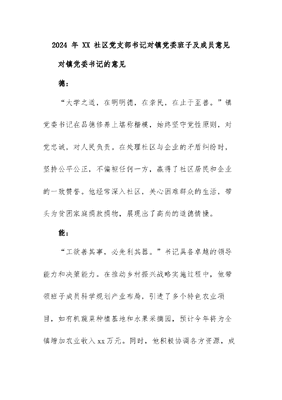2024 年 XX 社区党支部书记对镇党委班子及成员意见.docx