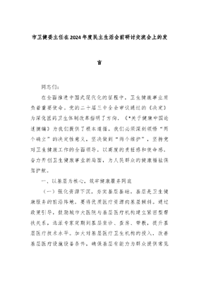 市卫健委主任在2024年度民主生活会前研讨交流会上的发言.docx