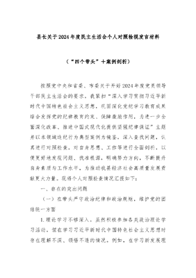 县长关于2024年度民主生活会个人对照检视发言材料(“四个带头”+案例剖析).docx