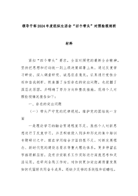 领导干部2024年度组织生活会“四个带头”对照检视剖析材料.docx