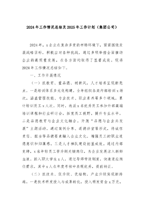 2024年工作情况总结及2025年工作计划(集团公司).docx