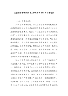 县供销合作社2024年工作总结和2025年工作打算.docx