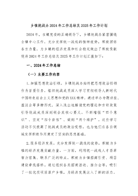 乡镇统战办2024年工作总结及2025年工作计划.docx