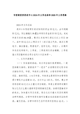 市招商投资促进中心2024年工作总结和2025年工作思路.docx