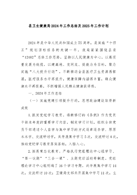 县卫生健康局2024年工作总结及2025年工作计划.docx