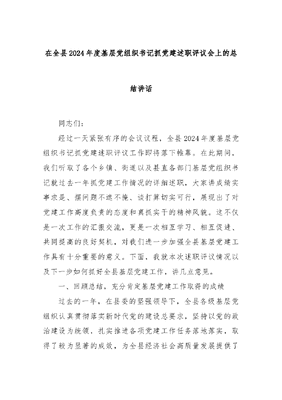 在全县2024年度基层党组织书记抓党建述职评议会上的总结讲话.docx