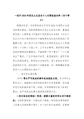 一把手2024年度民主生活会个人对照检查材料(四个带头).docx