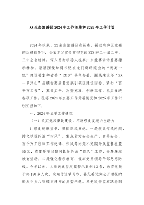 XX生态旅游区2024年工作总结和2025年工作计划.docx