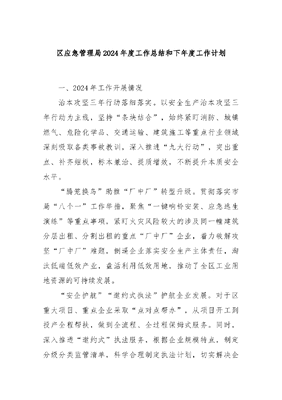区应急管理局2024年度工作总结和下年度工作计划.docx