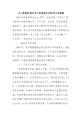乡人民政府2024年工作总结及2025年工作安排.docx