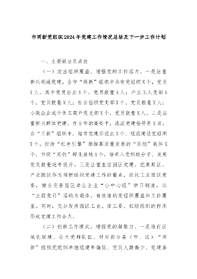 市两新党组织2024年党建工作情况总结及下一步工作计划.docx