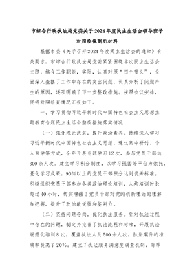 市综合行政执法局党委关于2024年度民主生活会领导班子对照检视剖析材料.docx