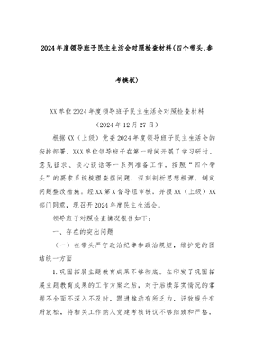 2024年度领导班子民主生活会对照检查材料(四个带头,参考模板).docx