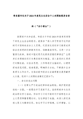 常务副市长关于2024年度民主生活会“四个带头”对照检视发言材料.docx