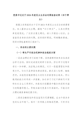 党委书记关于2024年度民主生活会对照检查材料(四个带头).docx