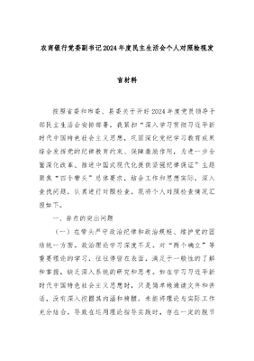 农商银行党委副书记2024年度民主生活会个人对照检视发言材料.docx