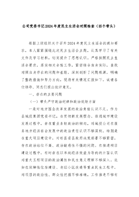 公司党委书记2024年度民主生活会对照检查(四个带头).docx