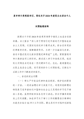 某市审计局党组书记、局长关于2024年度民主生活会个人对照检视材料.docx
