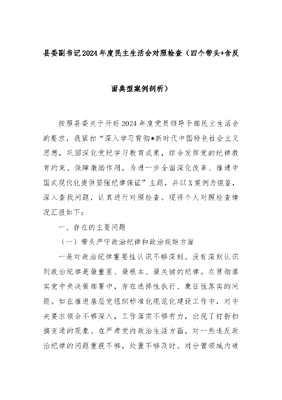 县委副书记2024年度民主生活会对照检查(四个带头+含反面典型案例剖析).docx