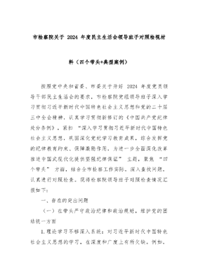 市检察院关于 2024 年度民主生活会领导班子对照检视材料(四个带头+典型案例).docx