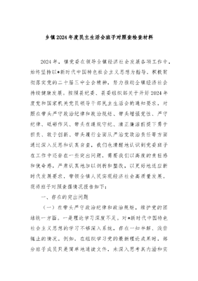 乡镇2024年度民主生活会班子对照查检查材料.docx