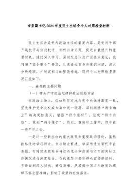 市委副书记2024年度民主生活会个人对照检查材料.docx