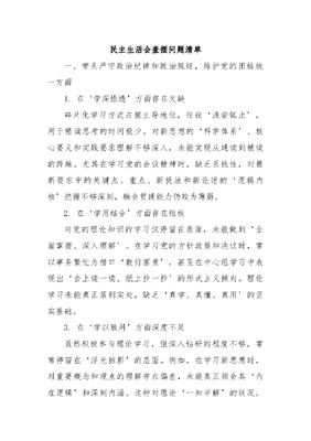 民主生活会查摆问题清单.docx
