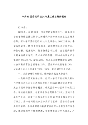 中共XX县委关于2024年度工作总结的报告.docx