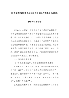XX市公共资源交易中心XX分中心2024年党建工作总结及2025年工作计划.docx