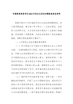 市国资委党委书记2024年民主生活会对照检查发言材料.docx