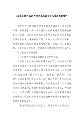 xx国企班子2024年度民主生活会个人对照检查材料.docx