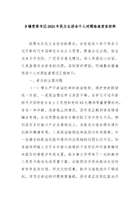 乡镇党委书记2024年民主生活会个人对照检查发言材料.docx