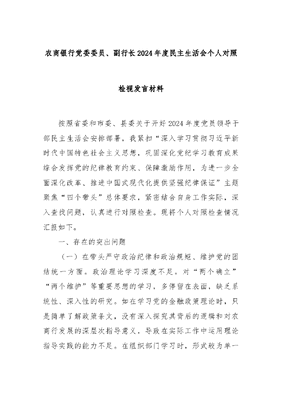 农商银行党委委员、副行长2024年度民主生活会个人对照检视发言材料.docx