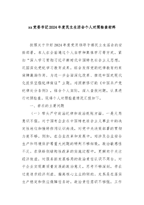 xx党委书记2024年度民主生活会个人对照检查材料.docx