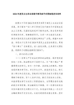 2024年度民主生活会某银行领导班子对照检视发言材料.docx
