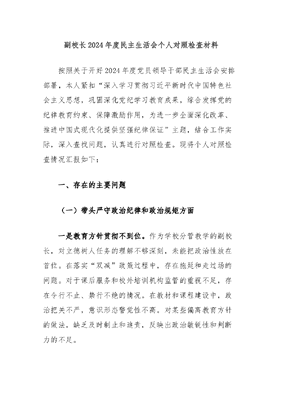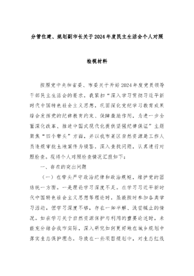 分管住建、规划副市长关于2024年度民主生活会个人对照检视材料.docx