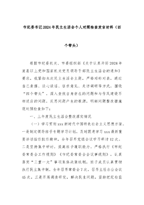 市纪委书记2024年民主生活会个人对照检查发言材料(四个带头).docx